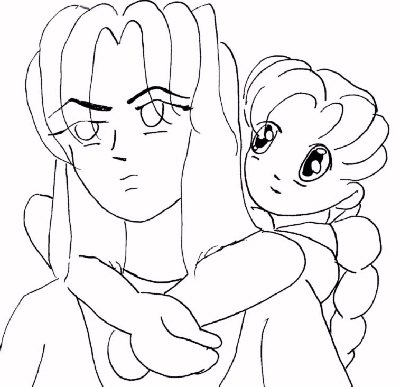 (The scene opens as Moyria sits in the woods next to a young girl named Ukio who hasjust claimed that Moyria is her mother)