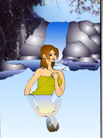 (The ball of magic fades from earth the scene cuts to space billions of miles away form Earth as The magical ball appears in the darkness it shines as if it was a star being reborn in the night sky. The body of both the monster and the man are frozen in a cube of ice. The scene quickly cuts to a splash of cold water on the head of one Moyria Gatent. she is sitting in a pool under a waterfall . Over in the shade of a tree on shore Moyrias Grandfather sits playing Shoji with her companion Curcit. )